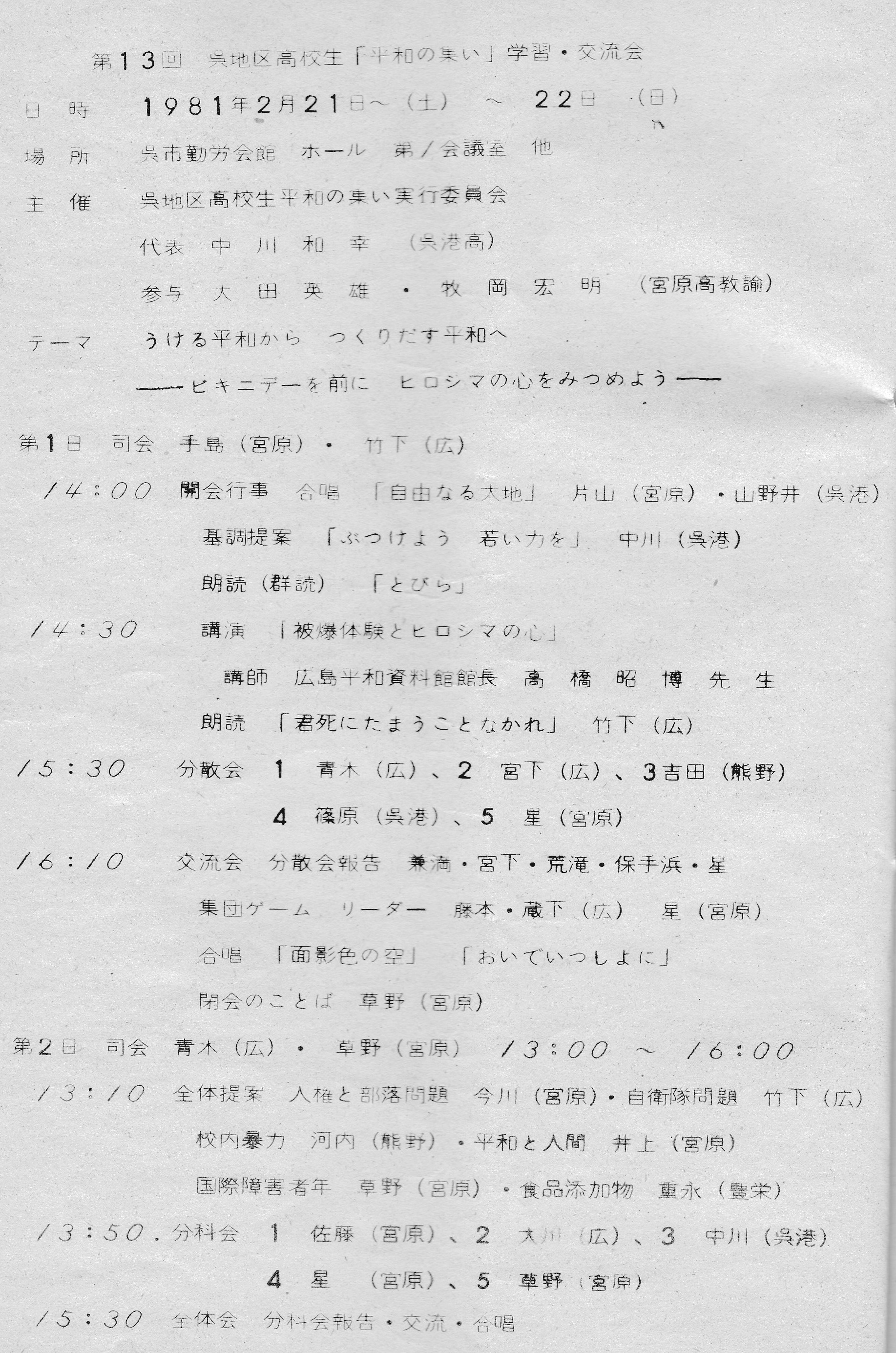 第13回 81、2・21〜22 呉勤労会館 延べ350名