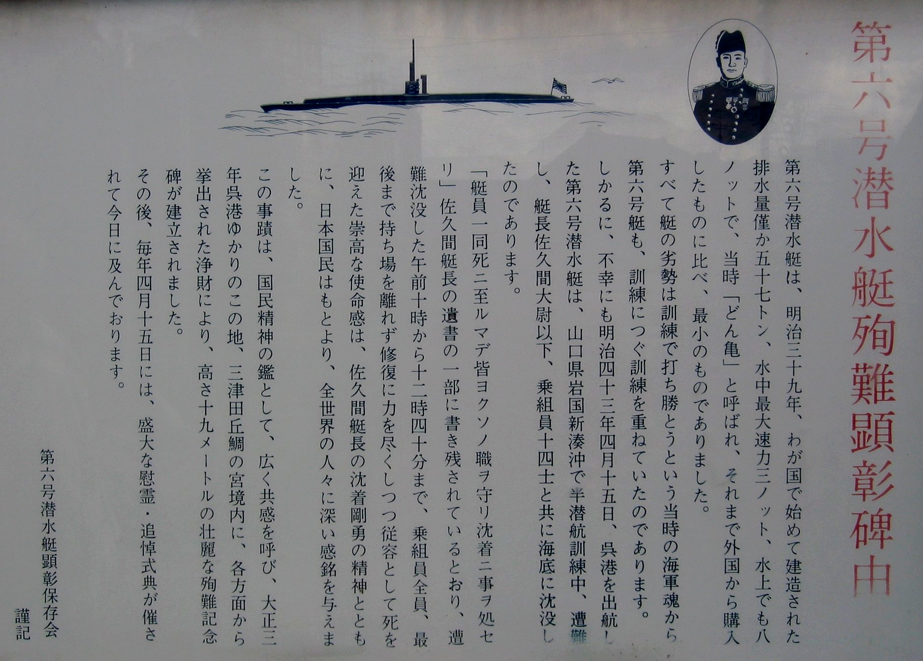 鯛の宮・第6号潜水艇殉難顕彰碑を紹介し、新たな事実や問題点を見てみましょう。
