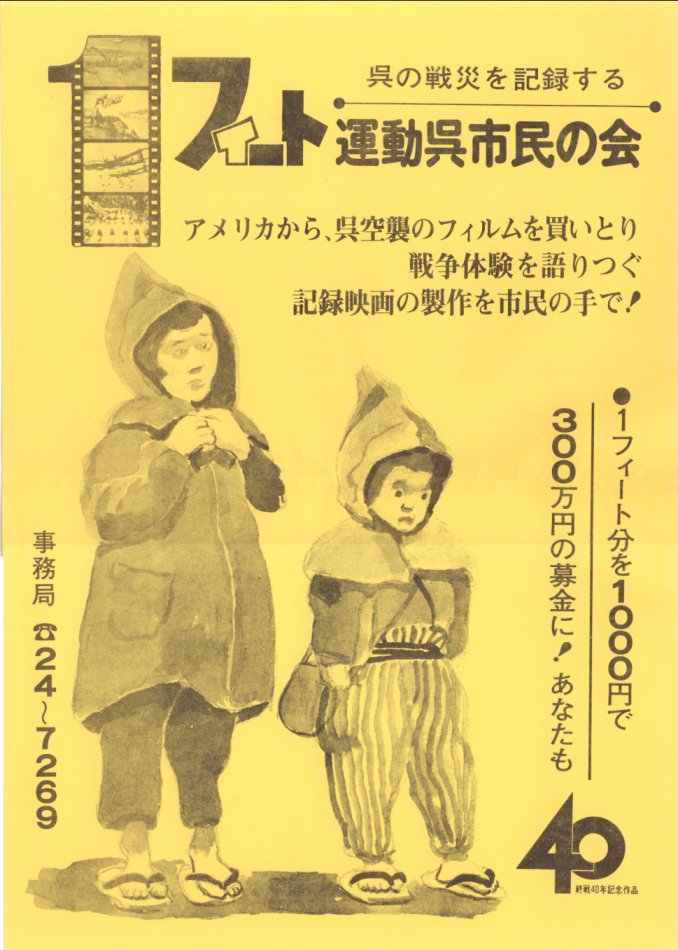 このような運動に刺激され、呉でも1985年「1フィート運動呉市民の会」を結成し、1口千円の寄付(完成後の映画鑑賞券代)で映像フィルムを買い戻し、呉空襲の映画を作る運動が始まった。
