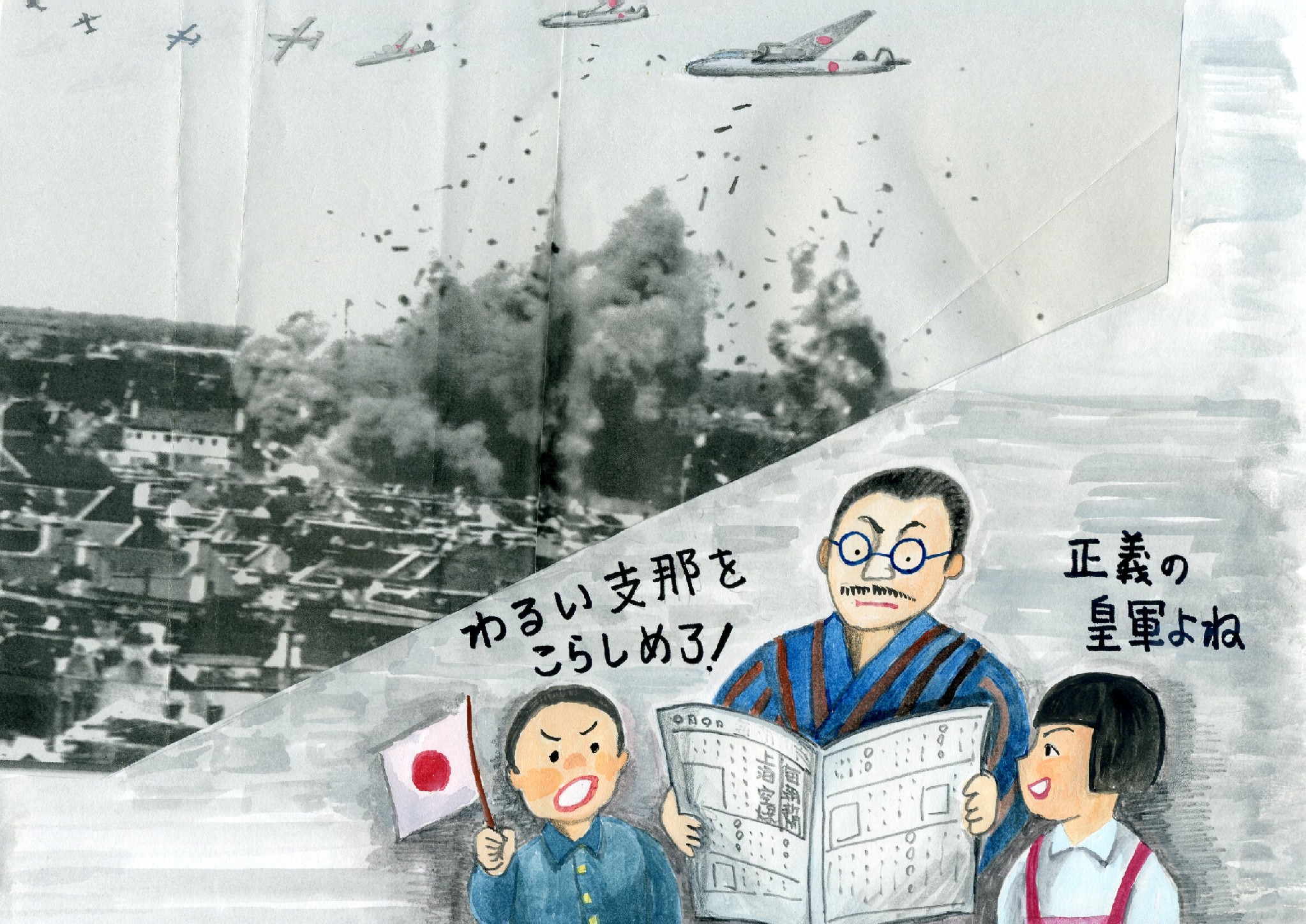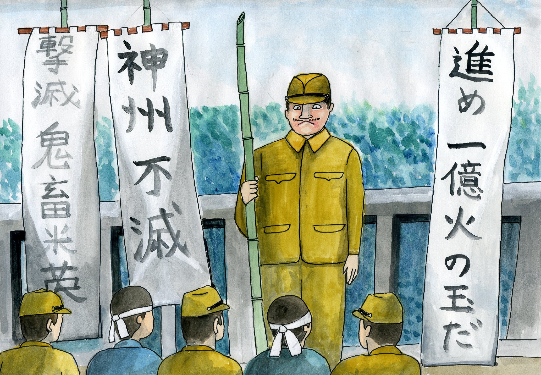多くの国民は皇国史観(天皇のために尽くす)と軍国主義(武力で解決)の