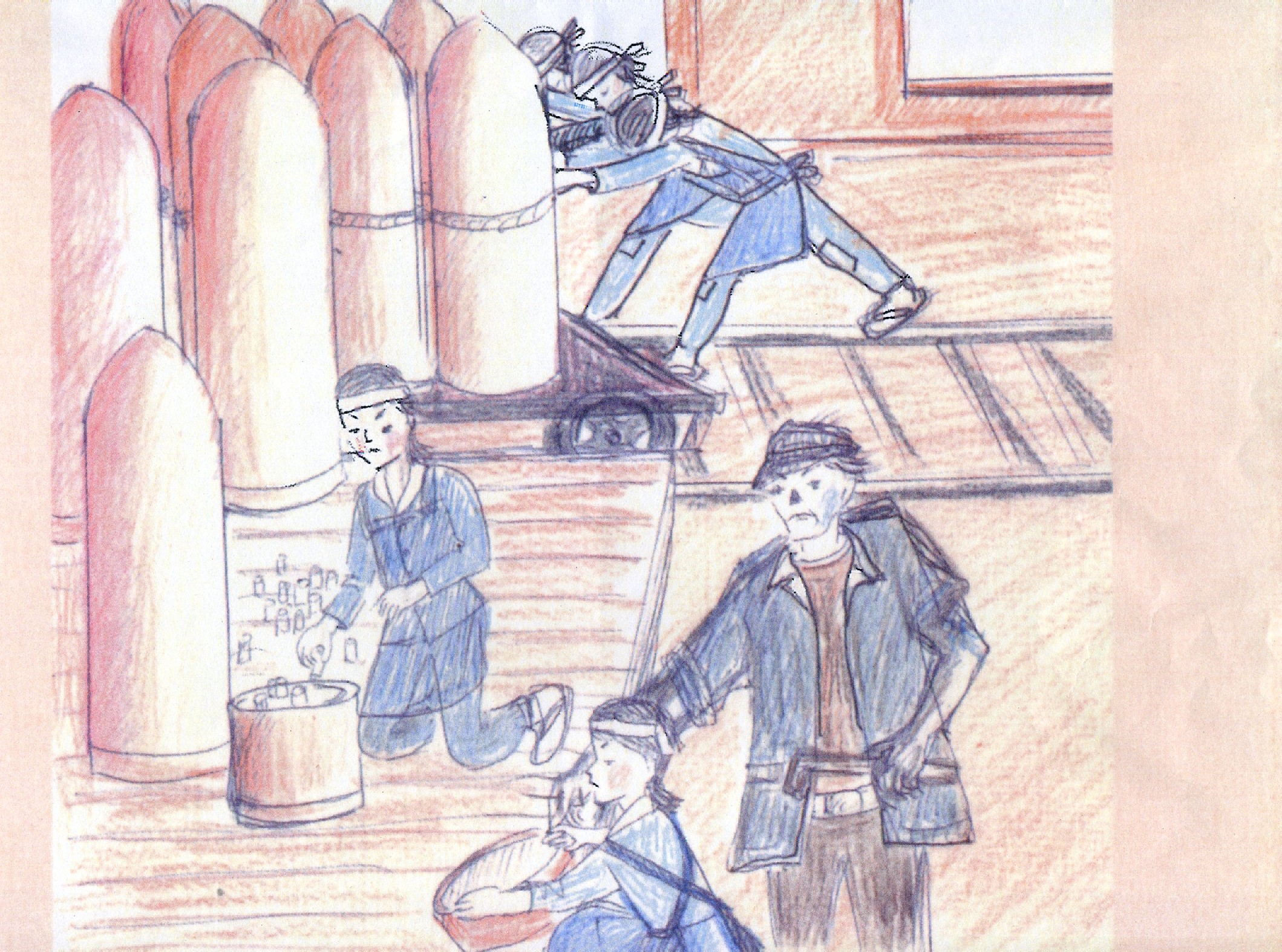 中学校や女学校以上の学校の授業は停止させられ、軍需工場で兵器生産の