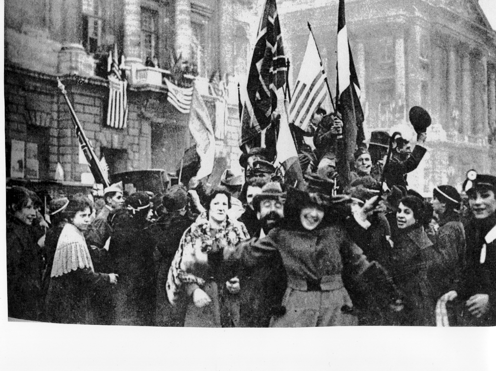 パリの街では、男たちも女たちも街頭にとびだして、それぞれの国旗を