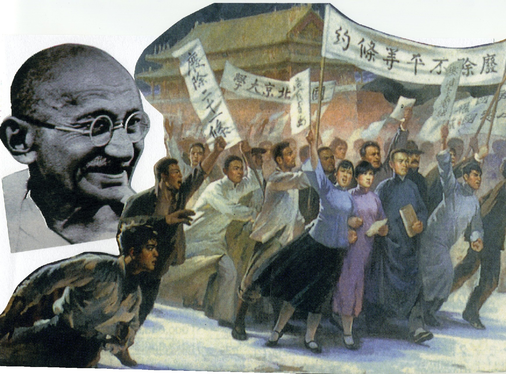 (7)一方、アジアではガンジーが「非暴力・不服従によるイギリスからの