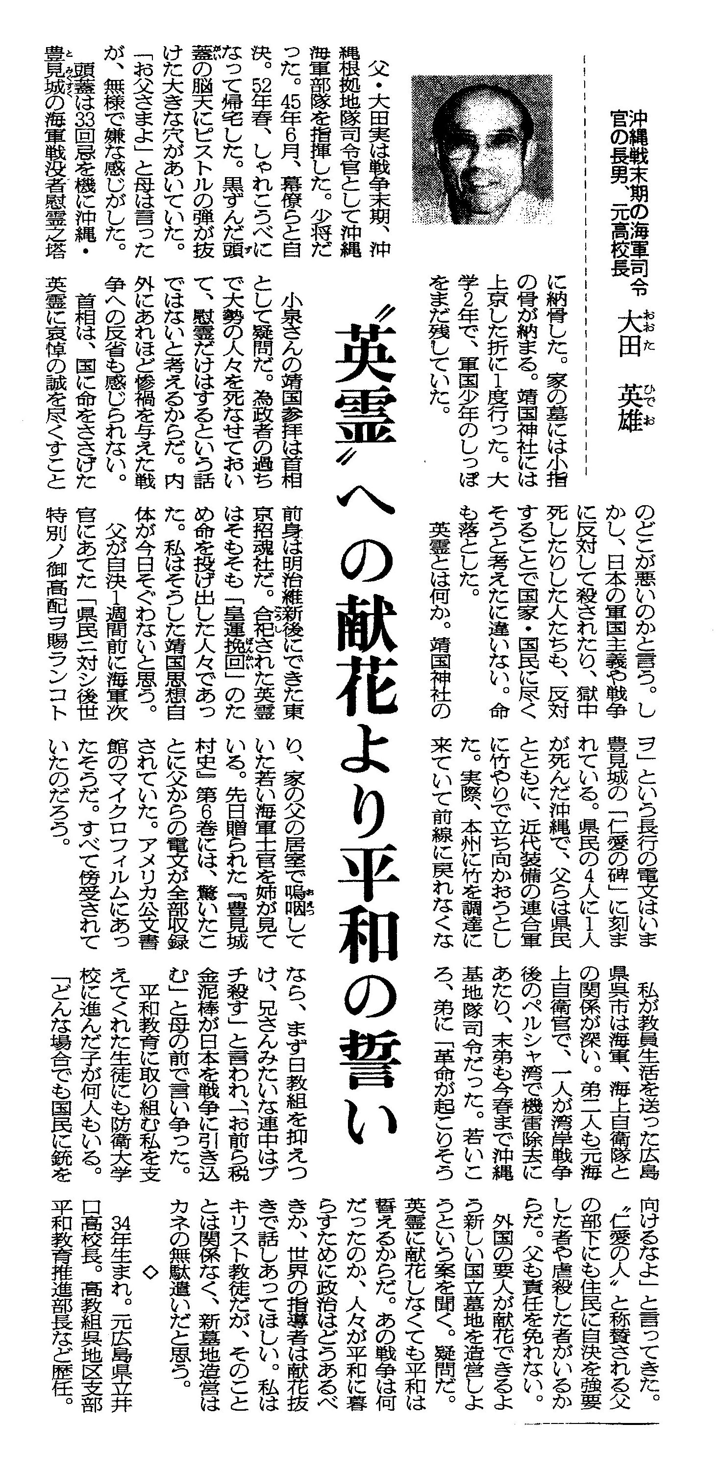 平和教育者が見た父・大田中将