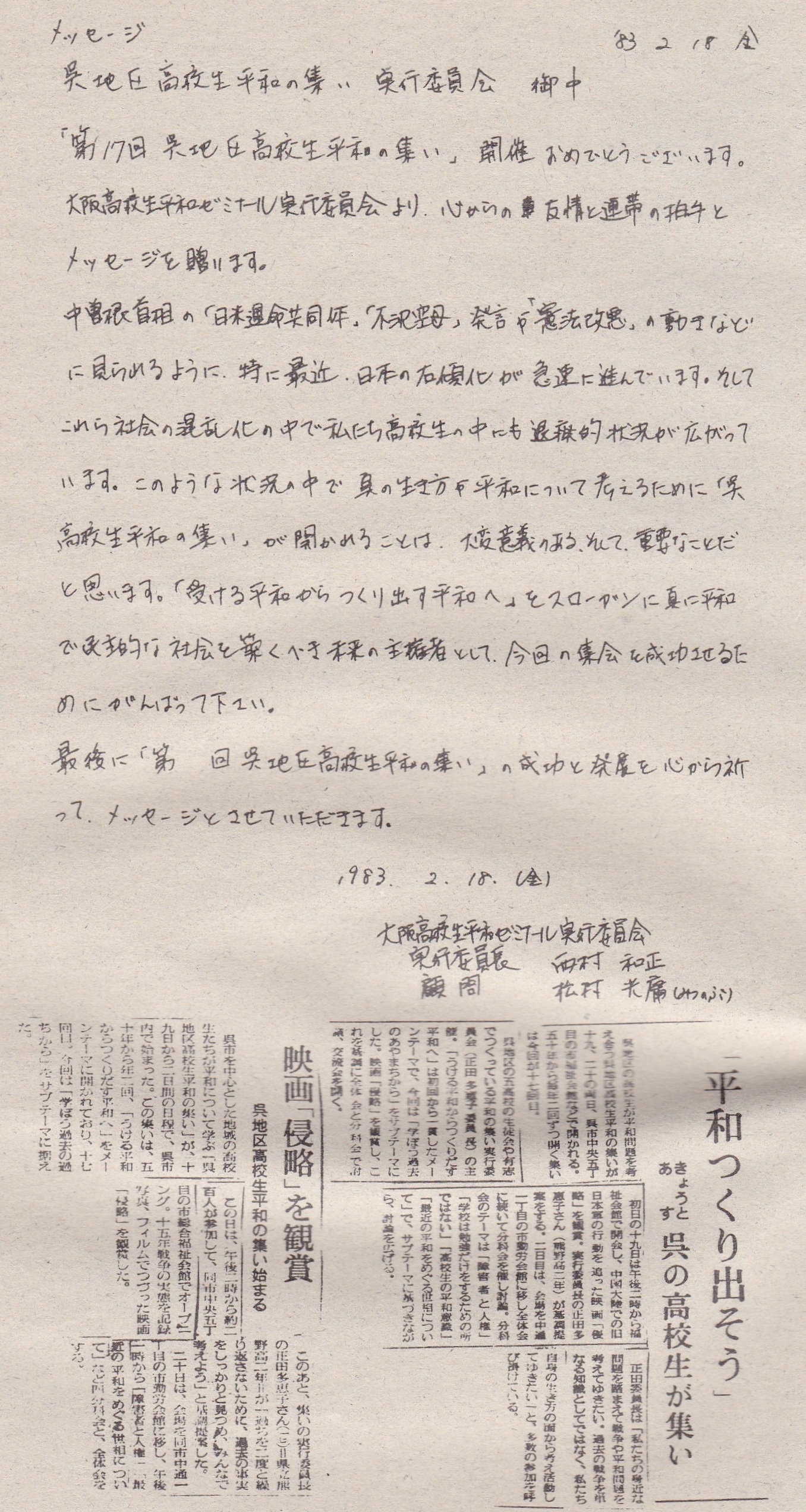 二つ目は、戦争体験の風化や右翼化 校内暴力が取りざたされる中で開催されたことです。