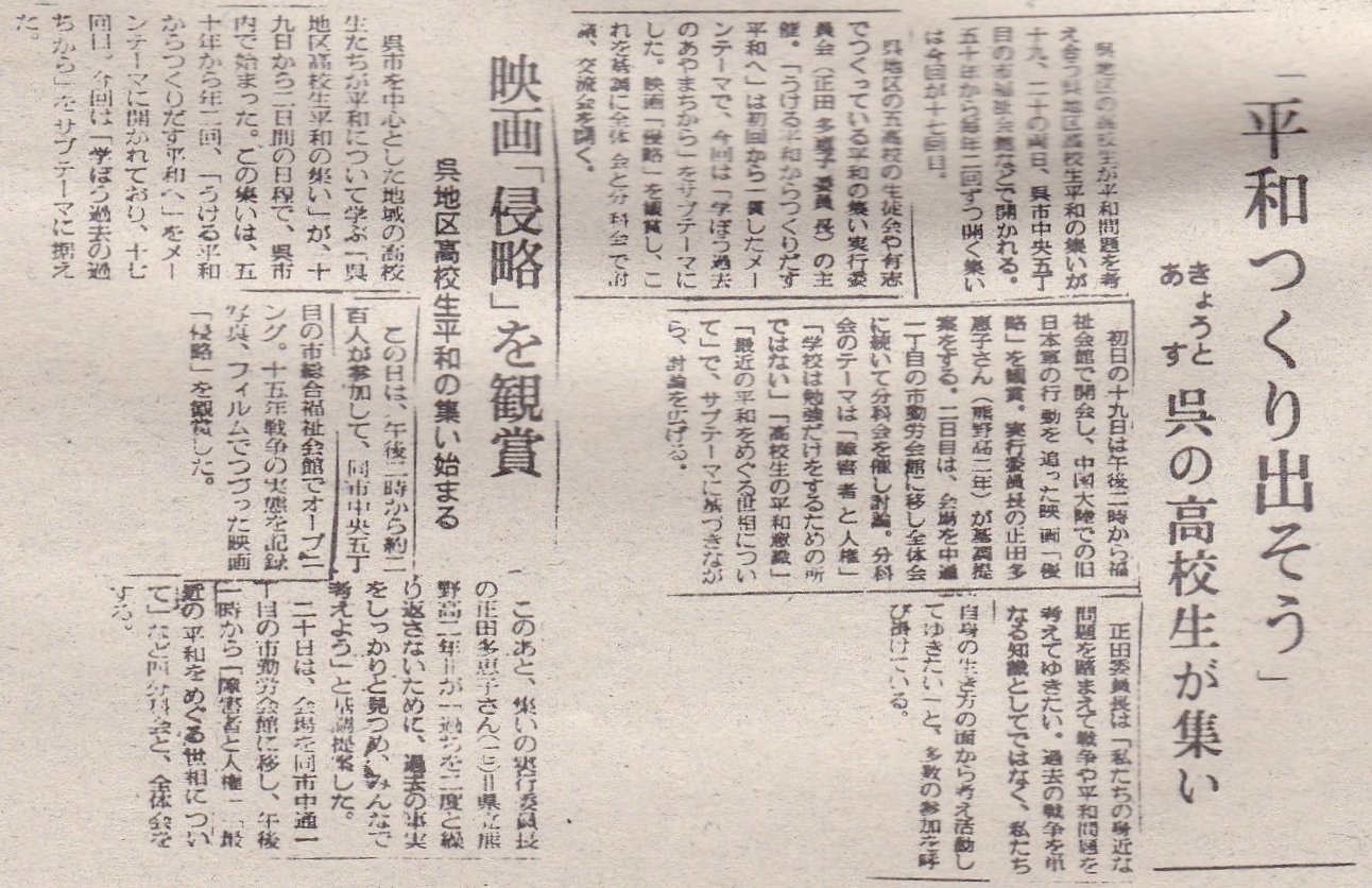 「呉地区高校生平和の集い」のあゆみーその3−へ