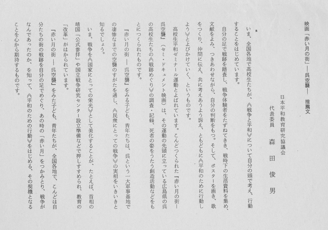 映画(ビデオ)「赤い月の街ー呉空襲ー」推薦文