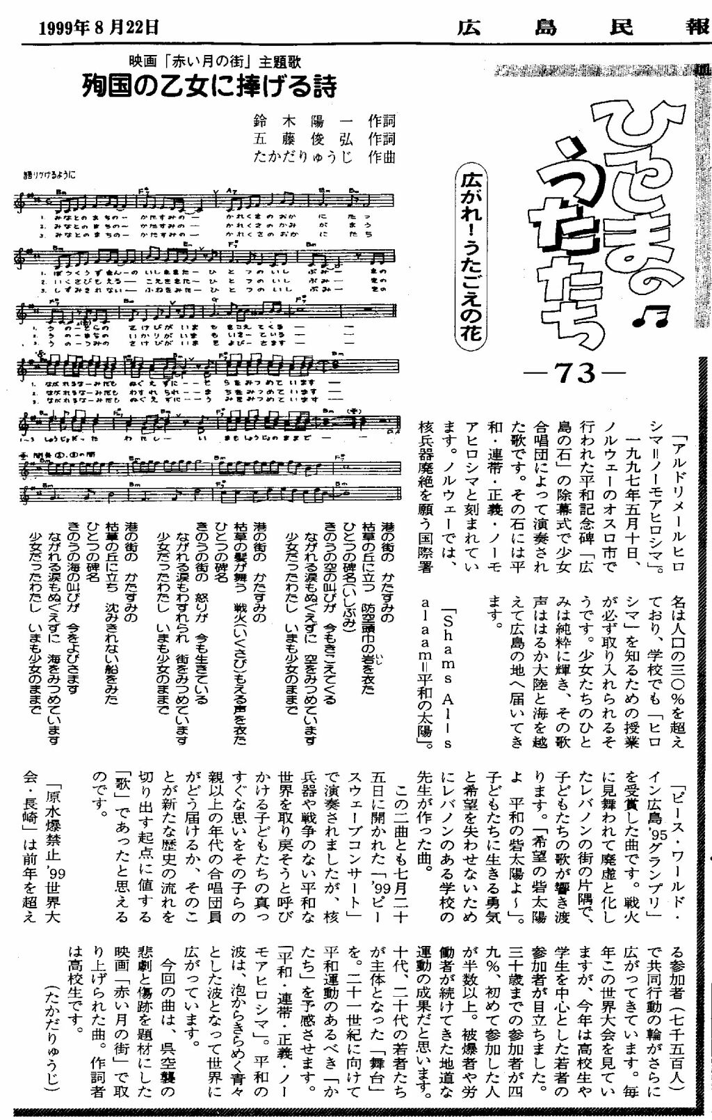 作曲家 たかだりゅうじ随想 随想・楽譜と歌詞(写真版)