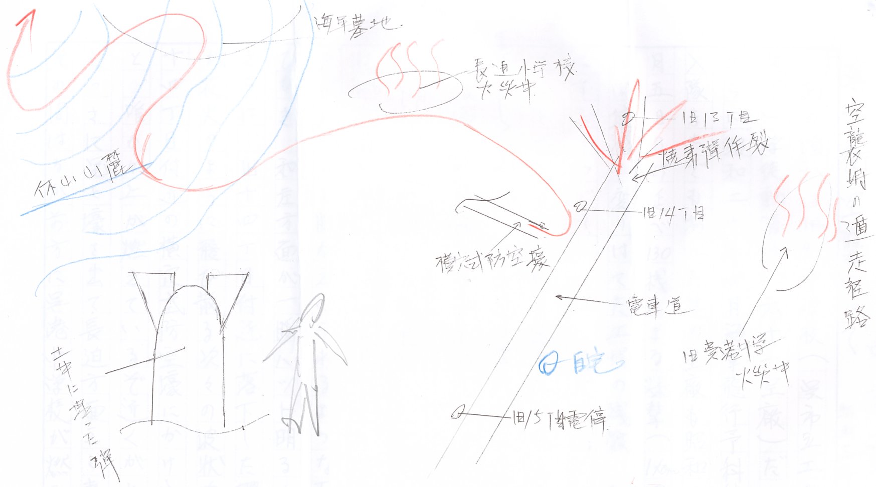 また、横穴壕の入り口が家の傍だったり、高小の時には校舎の真下に壕が造られ避難訓練をしていた。